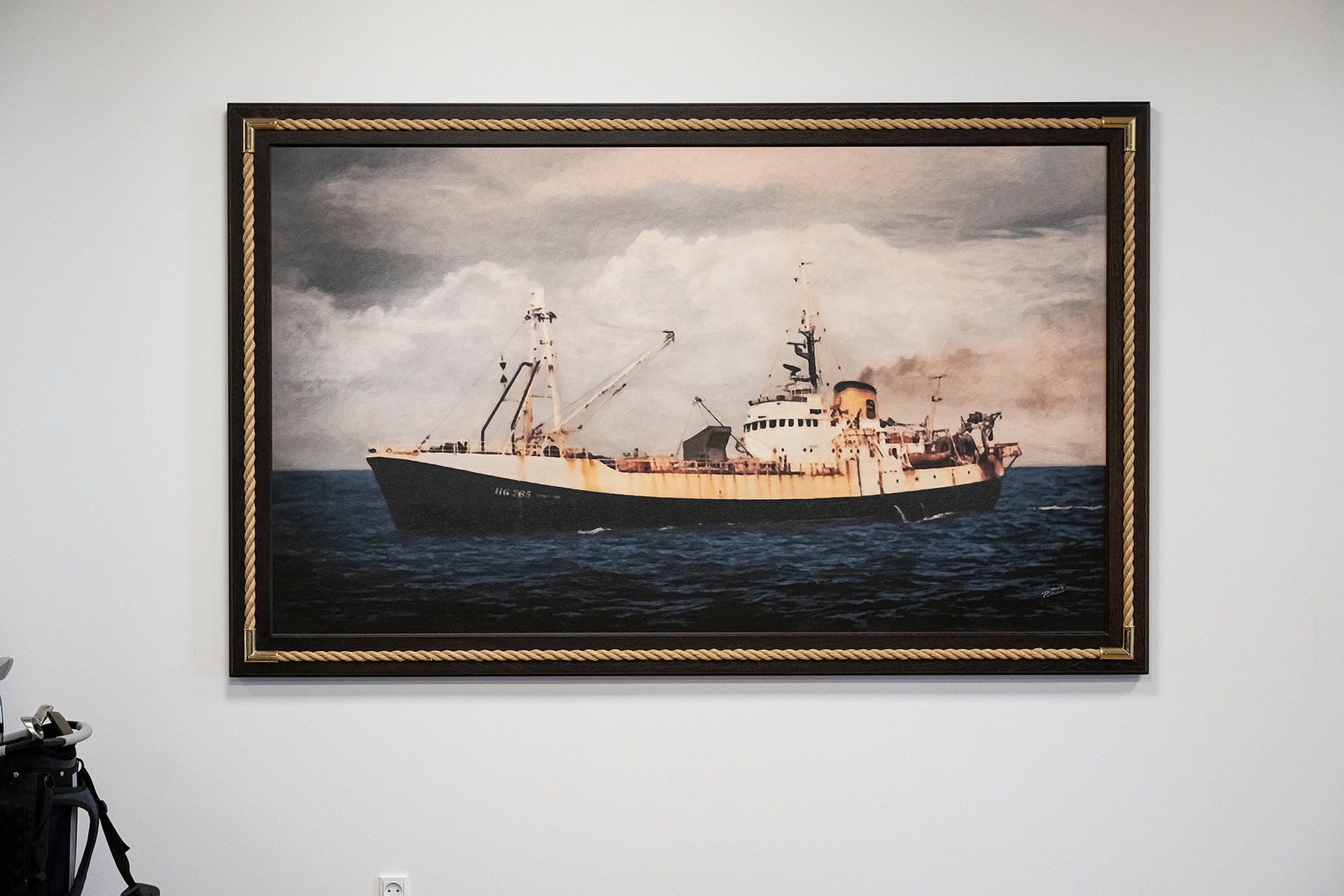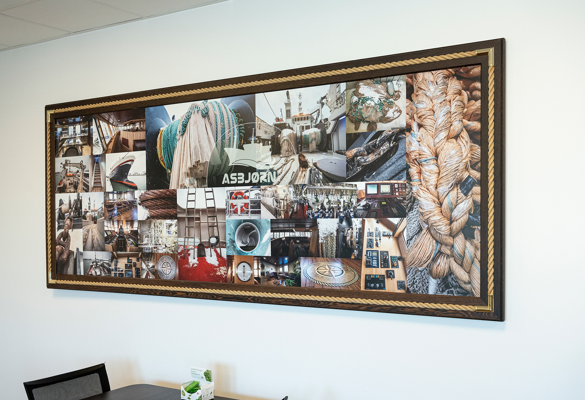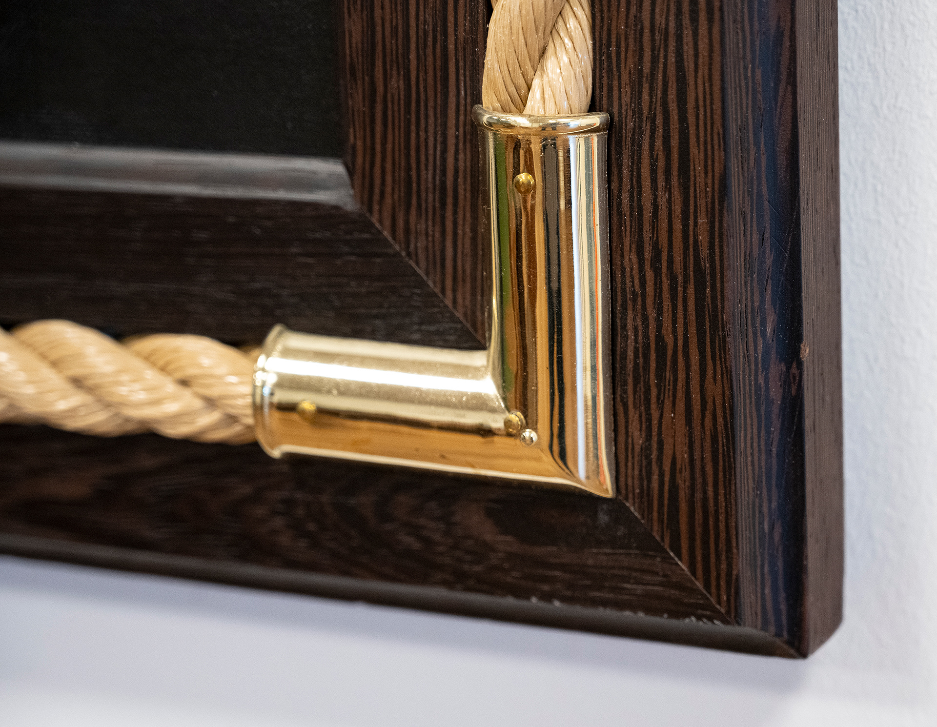 Jeg har designet rammerne med messingbeslag og reb og i en særlig træsort, som også døre osv. er lavet i. Rammerne er speciallavede hos HP Bygs dygtige snedker.