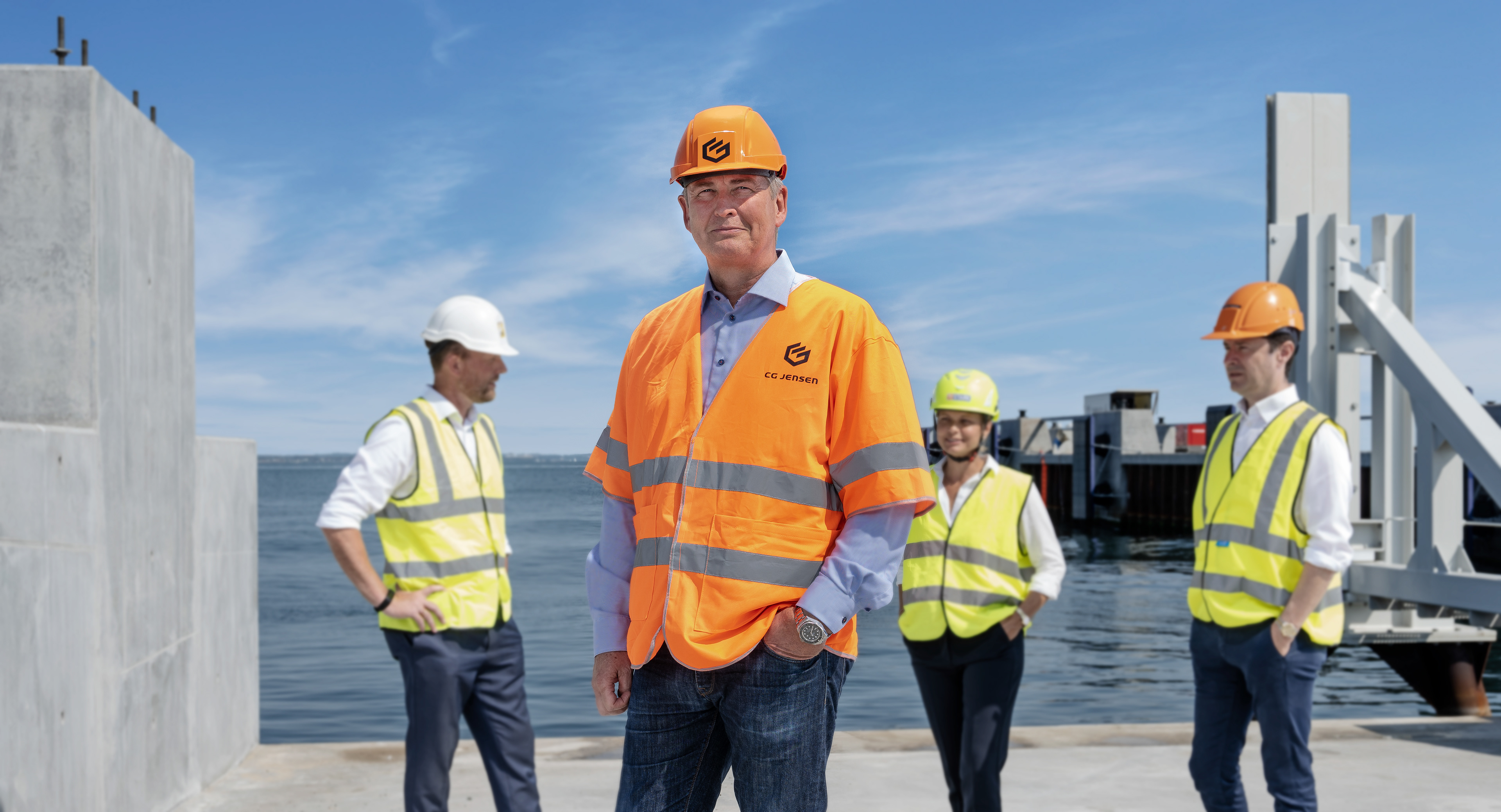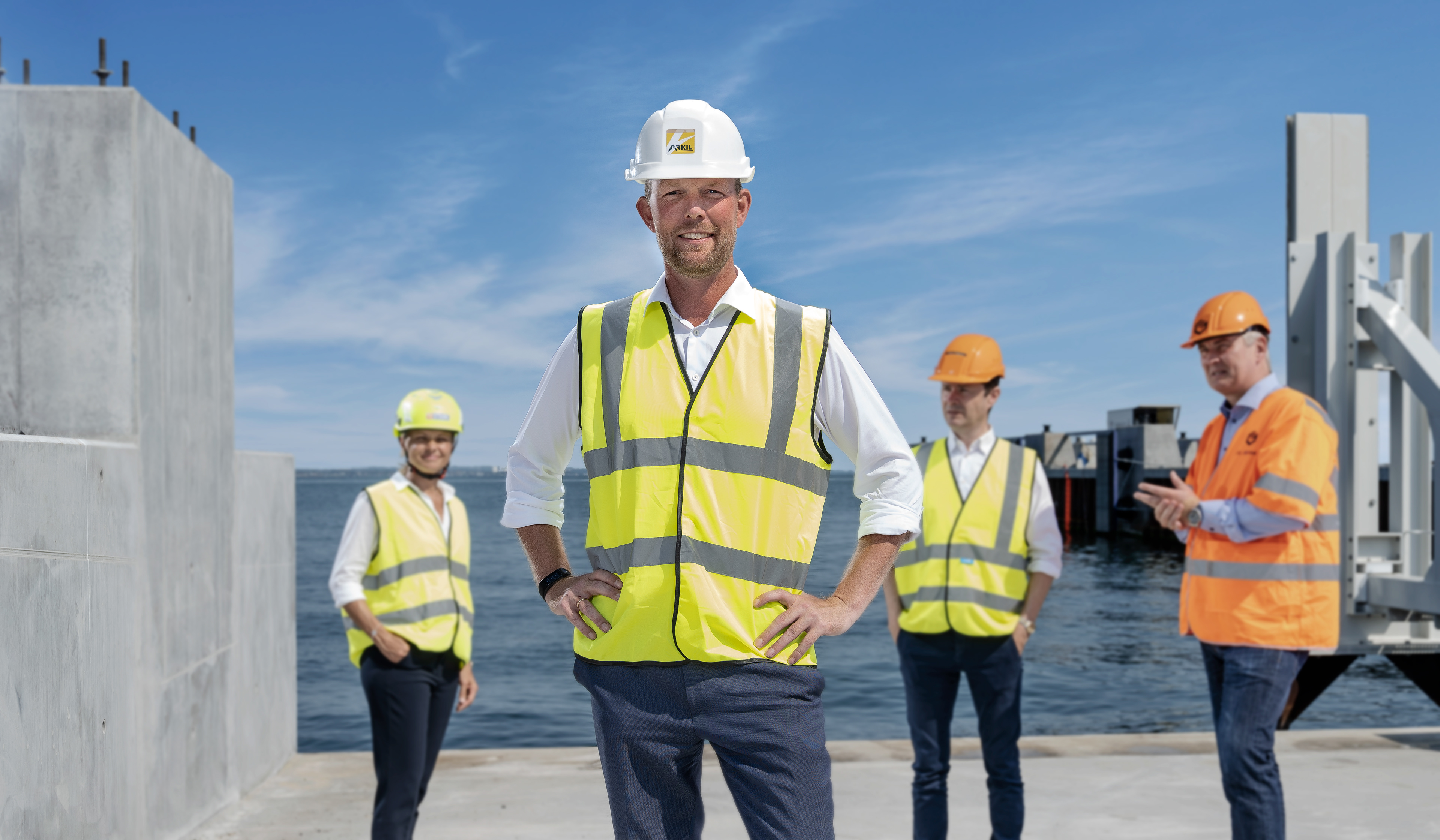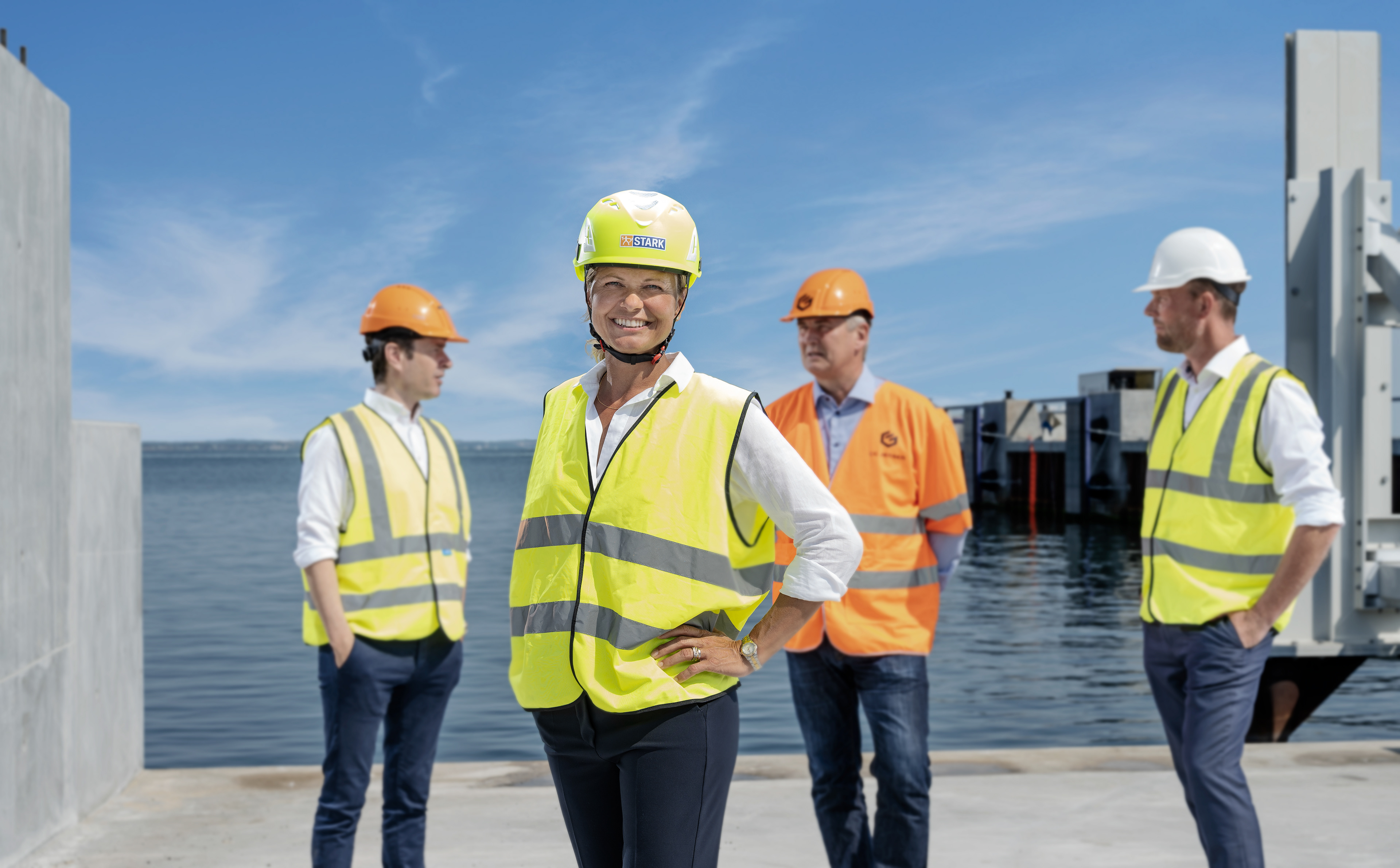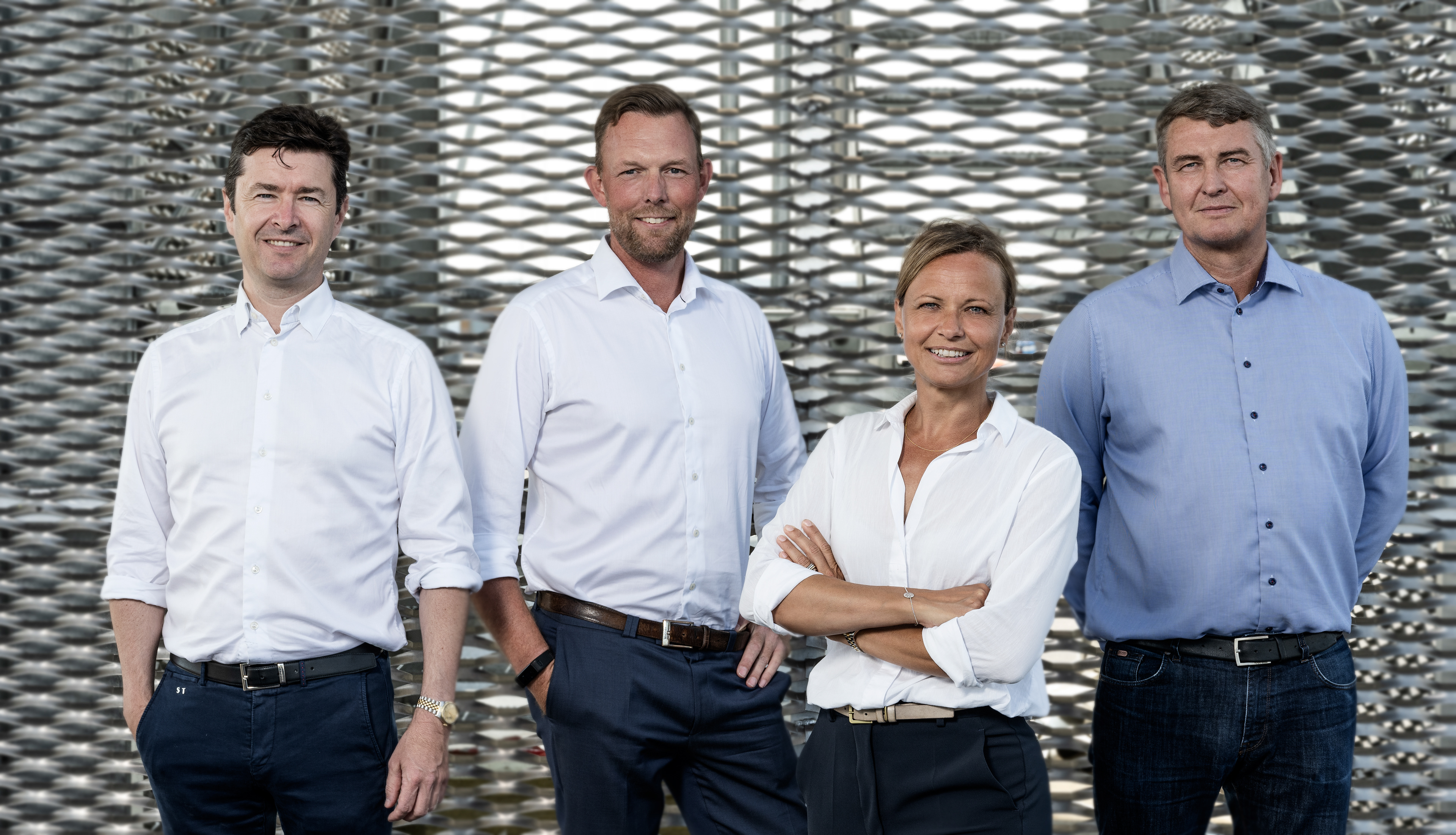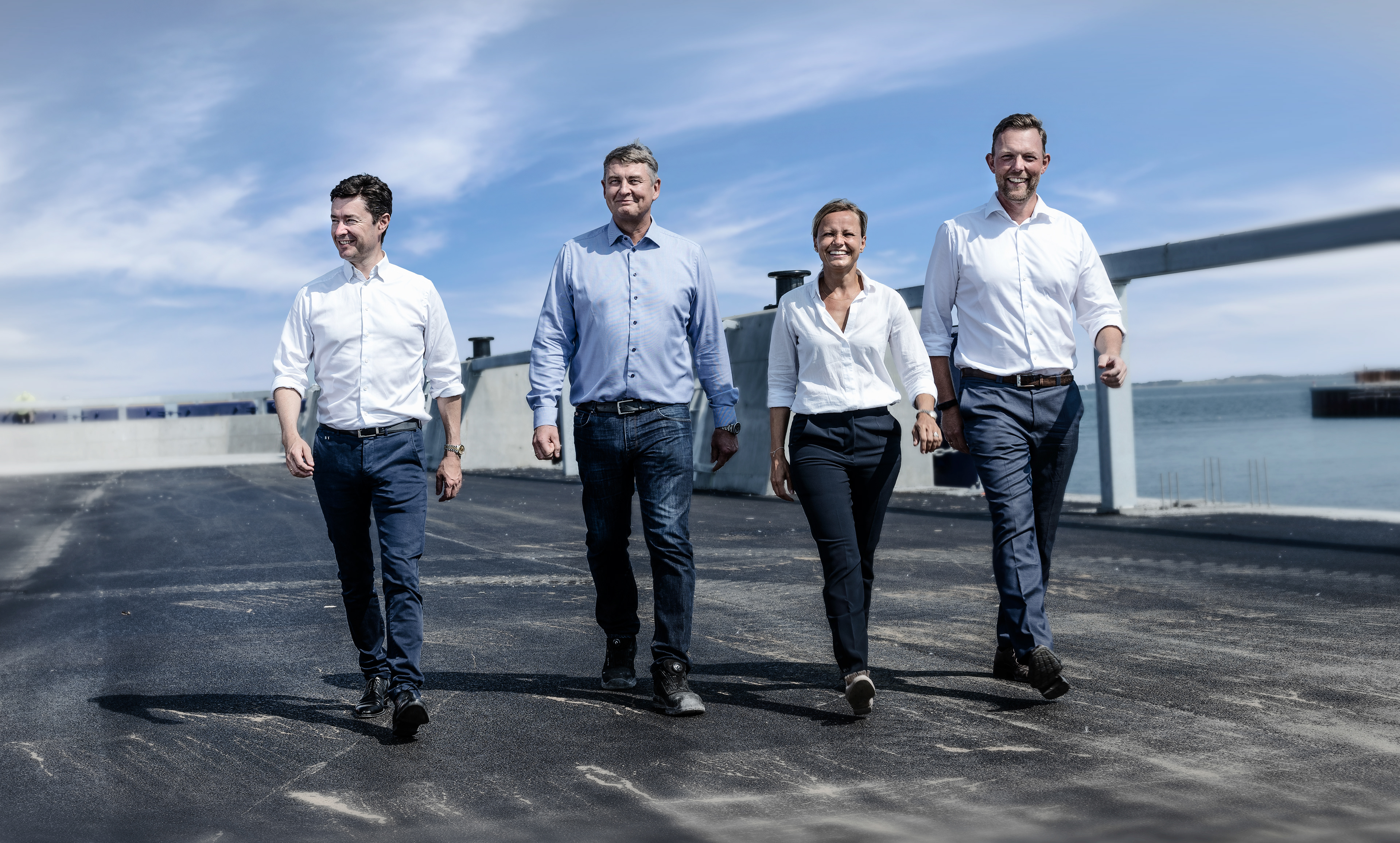 Behind the scenes og portrætter fra en portræt- og gruppefotosession på Aarhus Havn en vaaarm sommerdag med STARK, CG Jensen, Ambercon og Arkil i samarbejde med Vibeke fra Aptum Ink.