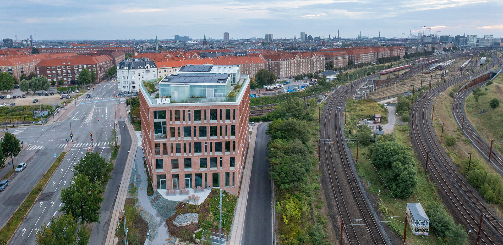 KAB Huset er en spændende bygning både ude og inde - med en helt speciel beliggenhed. Den er svær at komme til med dronen pga. fængslet ved siden af, hvor der en zone, vi ikke kan flyve i og togsporene på to sider af bygningen. men med tilladelse fra DSB og aftale med Aarsleff Rail og et go fra Vestre Fængsel, så lykkedes det.